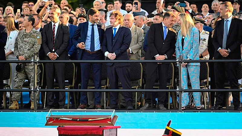 En el acto, Milei procedió al traslado del sable corvo del general José de San Martín hacia el Regimiento de Granaderos a Caballo.