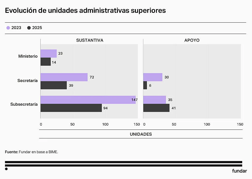 En las áreas de política pública que representan esos modelos de Estado, el número de unidades dedicadas a cada una de ellas fue reducido significativamente.