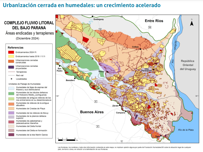 El estudio hace foco en el desarrollo inmobiliario en zonas de humedales que dependen del sistema del Delta del Paraná, sobre todo, en la sección bonaerense del ecosistema. Por intenso, desordenado y explosivo.
