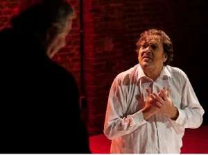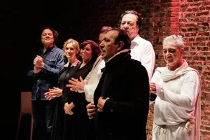 Estreno con tintes de homenaje a sus primeros años de formación a finales de los años 70 cuando encontró en Arteón y en el maestro Néstor Zapata, que habitaba por entonces ese mismo universo con una recordada versión de esa misma obra que recorrió escenarios del país y el exterior, un lugar de creación y experimentación que lo vinculó con el teatro para siempre, Bertol revisita el texto de un sólo acto más un epílogo a su manera, con sus formas y con la confianza plena en un equipo de actores y actrices de edades y formaciones muy diversas que alcanza momentos de un dramatismo doloroso, y que se empodera por pasajes sobre ese fino borde que se vuelve estampa de una época que también puede ser ésta.