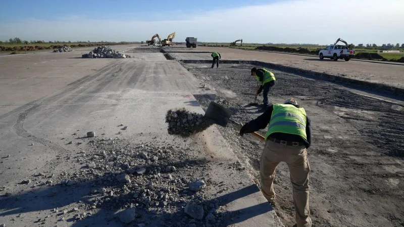 El Aeropuerto Internacional de Rosario “Islas Malvinas” comienza a cambiar su fisonomía. Tras 10 días de obras, continúa el avance de los trabajos que se llevan a cabo en la pista principal.