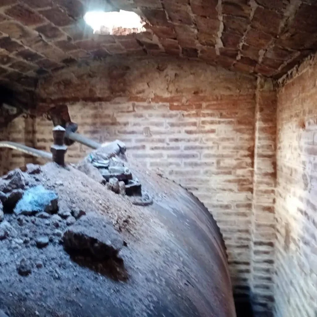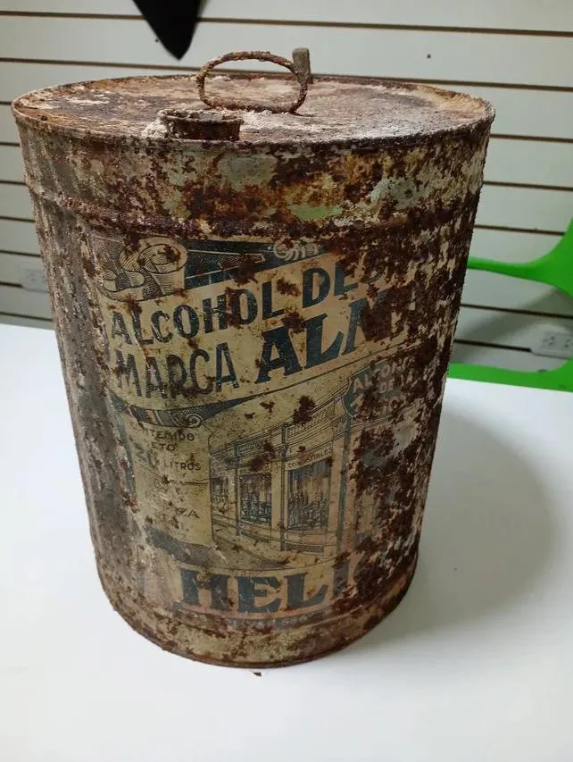 Se trata de un tanque de hierro remachado en óptimas condiciones, con caños adosados para carga y purgado. Junto a él, apareció una lata de alcohol de la marca Alcoluz, datada entre las décadas del ’30 y ’40. “El problema de la infraestructura histórica es la falta de registros; recién en los años ’50 o ’60 aparecen planos precisos de las redes de agua y cloacas”, señaló el especialista.