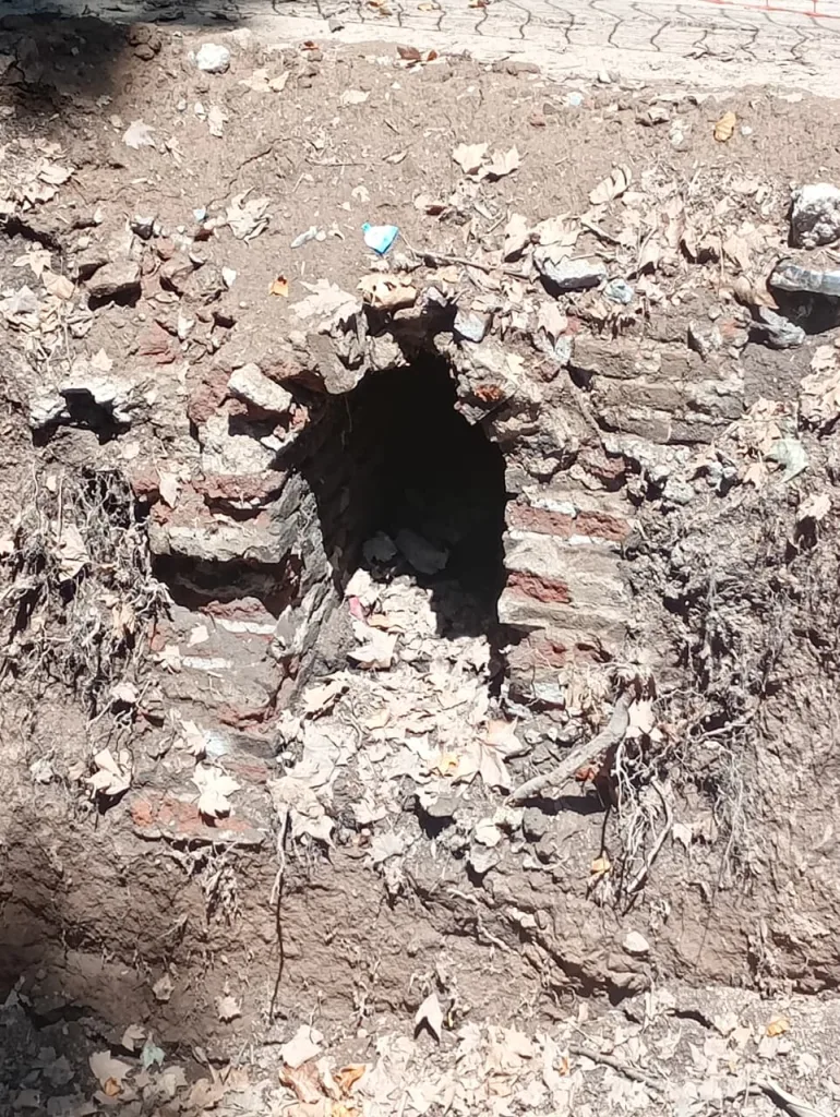 Se han hallado estructura de ladrillo o una mampostería y en realidad se trata de un pozo absorbente con una bóveda de tipo cañón y tiende a confundirse con la estructura de un túnel.