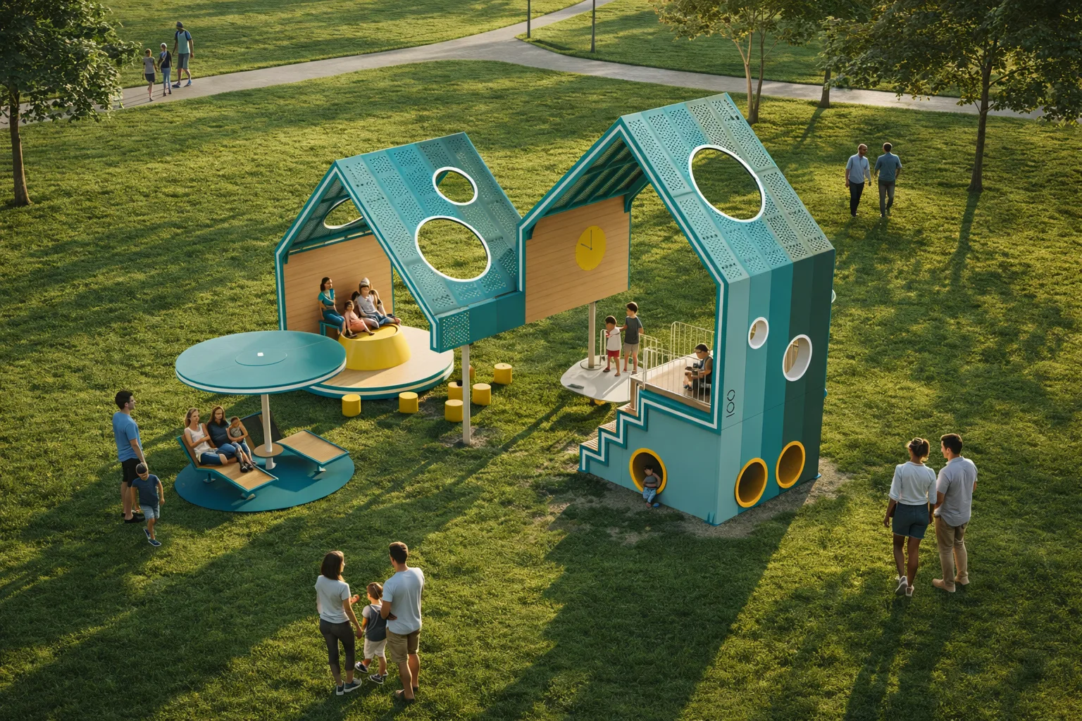 El proyecto fue desarrollado junto a Cruci y cuenta con el acompañamiento de la Municipalidad de Rosario. La propuesta incorpora una instalación de juegos de diseño contemporáneo pensada para estimular el juego, el encuentro y la convivencia en uno de los polos urbanos más activos de Rosario.