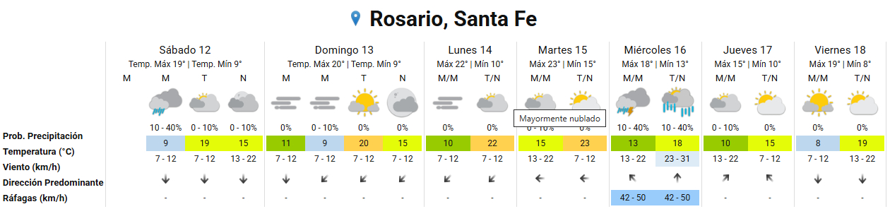 Para el domingo, el panorama es un poco mejor. Aunque con neblina al principio, hay más chances de sol después del mediodía. Sin lluvia en el horizonte, la mínima estimada es de 9 grados y la máxima, de 20. Los vientos: del norte y noreste.