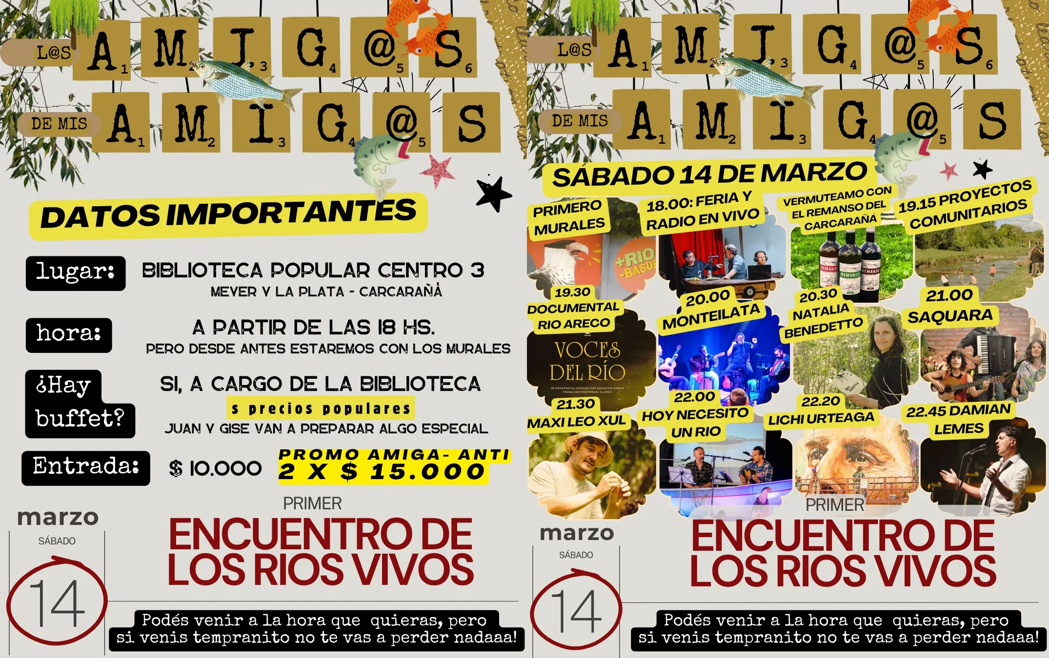 La fecha no es caprichosa: los 14 de marzo se celebra en todo el planeta el Día Internacional de Acción por los Ríos. Desde la ciudad homónima al río que en guaraní significa «carancho diablo» organizaron charlas, intervenciones artísticas, ferias y momentos para pensar en conjunto cómo vivir con los ríos.