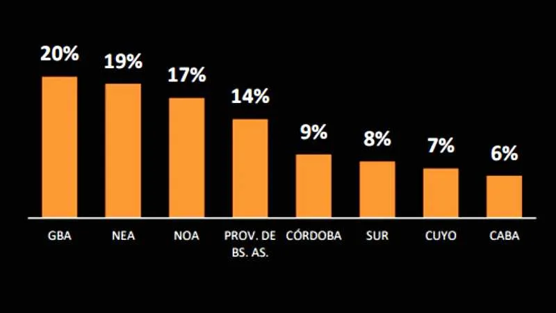 Las personas que demandan otro trabajo se encuentran principalmente en el Gran Buenos Aires (20%), en el NEA (19%) y en el NOA (17%).