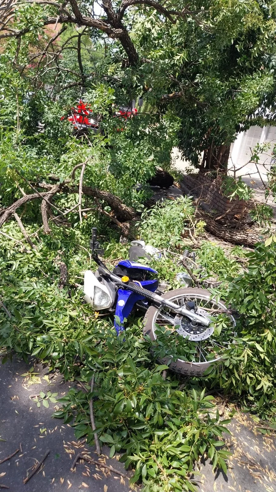 Uno de los episodios más graves ocurrió en la zona de Riccheri casi San Lorenzo, donde un árbol cayó sobre una motocicleta en la que circulaban dos personas con casco.