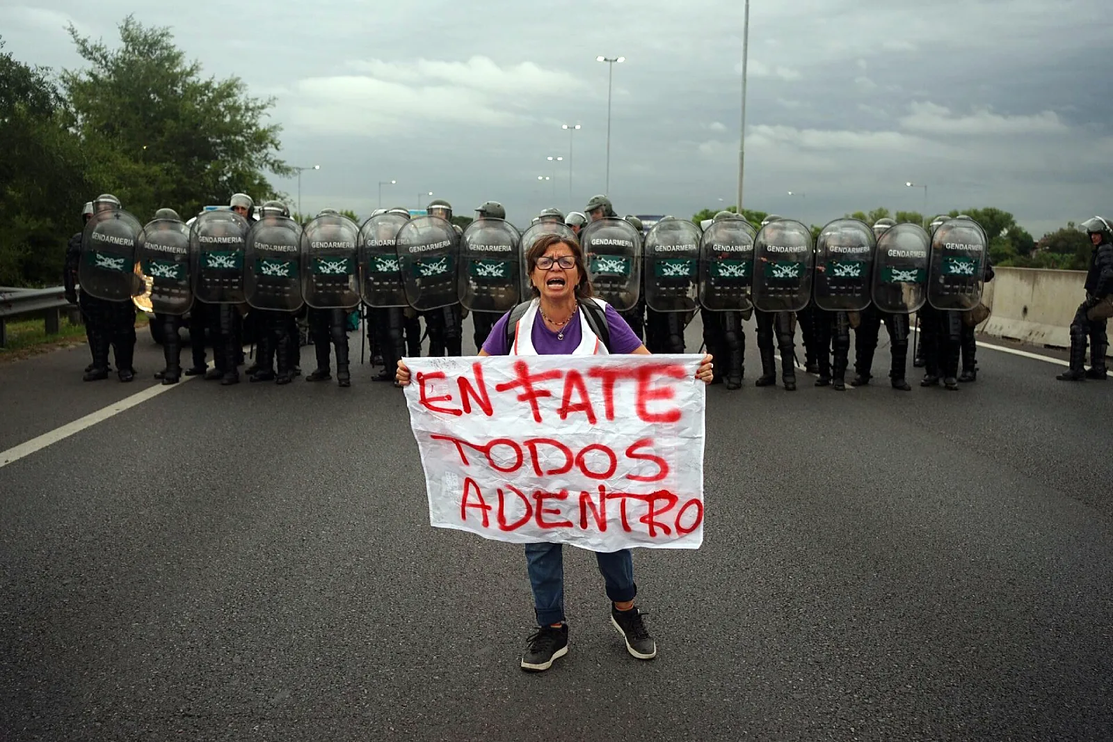 Al lugar arribó personal de la Gendarmería Nacional que solicitó a los trabajadores si podrían al menos liberar medio carril de la citada Autopista, lo que ocurrió momentos después. Después de algunos cruces sin violencia, las fuerzas de seguridad se retiraron del lugar.