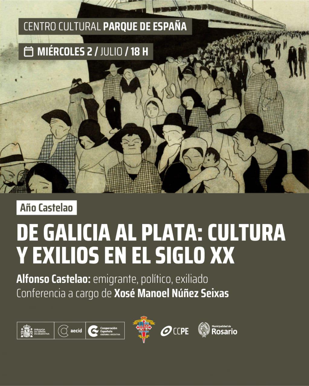 Este miércoles 2 de julio, a partir de las 18, en el Túnel 4 del Centro Cultural Parque de España, el historiador gallego Xosé Manoel Núñez Seixas dará una conferencia que lleva por título De Galicia al Plata: cultura y exilios en el siglo XX. La presentación estará a cargo de Carina Frid. Alfonso Castelao: emigrante, político, exiliado, en el marco del Año Castelao y conmemorando el 75 aniversario de su fallecimiento. El historiador español ofrecerá una mirada profunda sobre los vínculos entre Galicia y el Río de la Plata, a través de las experiencias del exilio y la emigración del siglo XX. Este encuentro busca poner en diálogo las memorias del exilio republicano y gallego con las comunidades de la diáspora en Argentina, aportando a la difusión y reflexión sobre los aportes culturales, políticos y sociales de quienes debieron abandonar su tierra por motivos políticos.