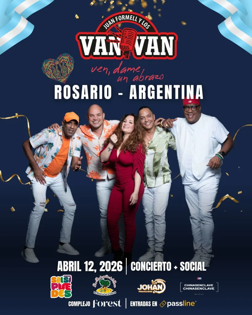 Rosario se prepara para recibir uno de los eventos internacionales más esperados de la temporada. Tras más de una década de ausencia en los escenarios argentinos, la emblemática orquesta Los Van Van de Cuba regresará a la ciudad el domingo 12 de abril. El encuentro tendrá lugar en el Complejo Forest (Brown 3198) , donde la agrupación presentará su gira Ven, dame un abrazo, una propuesta que no sólo celebra el reencuentro con sus seguidores del sur del continente, sino que también conmemora más de 55 años de una trayectoria ininterrumpida que los convirtió en referentes de la música cubana. Las entradas, desde los 65 mil pesos, ya se encuentran disponibles a través de la plataforma Passline.
