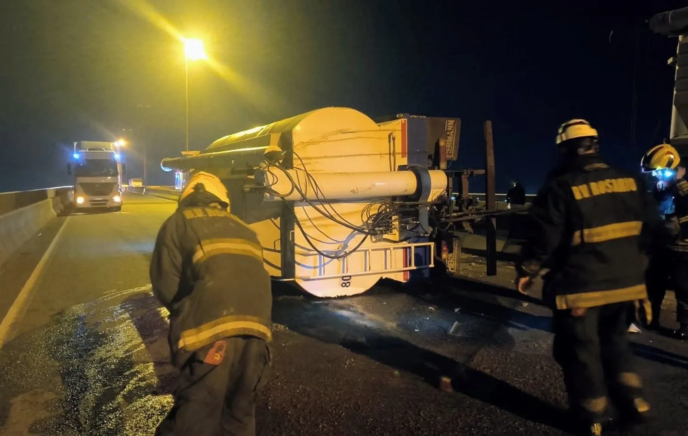 Fuentes oficiales confirmaron que el camión volcó cerca de la 1 de la madrugada.