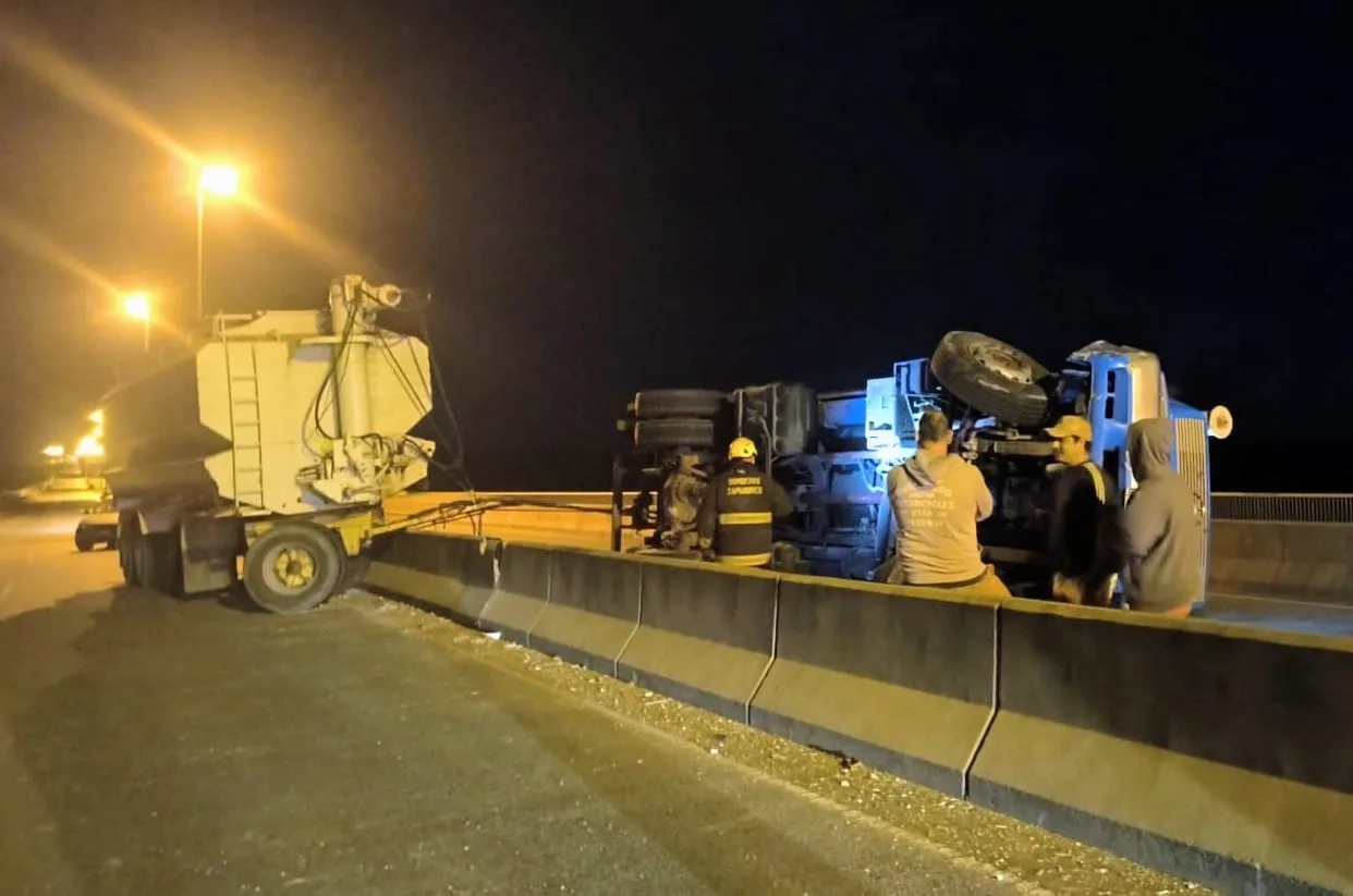 De acuerdo a la versión preliminar, el camionero perdió el control y pasó por encima de las barreras de hormigón que dividen los carriles de la ruta.