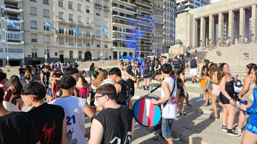 Mucho ruido a festejo por las calles rosarinas. Desde la noche del miércoles comenzaron a escucharse estruendo y fuegos artificiales por zonas cercanas a distintas escuelas. Es que los estudiantes de 4° año celebran el ya clásico Banderazo, que es el festejo por el nuevo ciclo, que será el último de la educación secundaria. Y continúan este jueves en el Monumento a la Bandera.