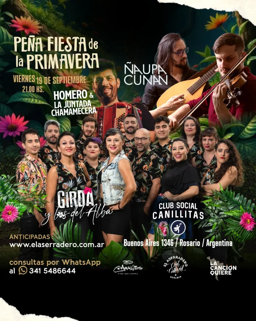 Este viernes la primavera se adelanta y su alegría inundará el Club Social Canillitas (Buenos Aires 1346), con la gran peña que ofrecerán las bandas Girda, Homero y la Juntada Chamamecera, Ñaupa Cunan y muchos más.