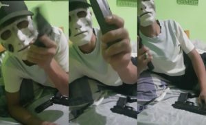 «Todas estas balitas son para ustedes», dice un hombre enmascarado en un video, que a la vez ordena devolver los objetos saqueados ayer en una vivienda